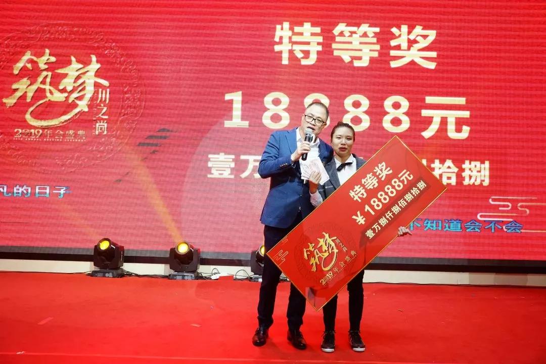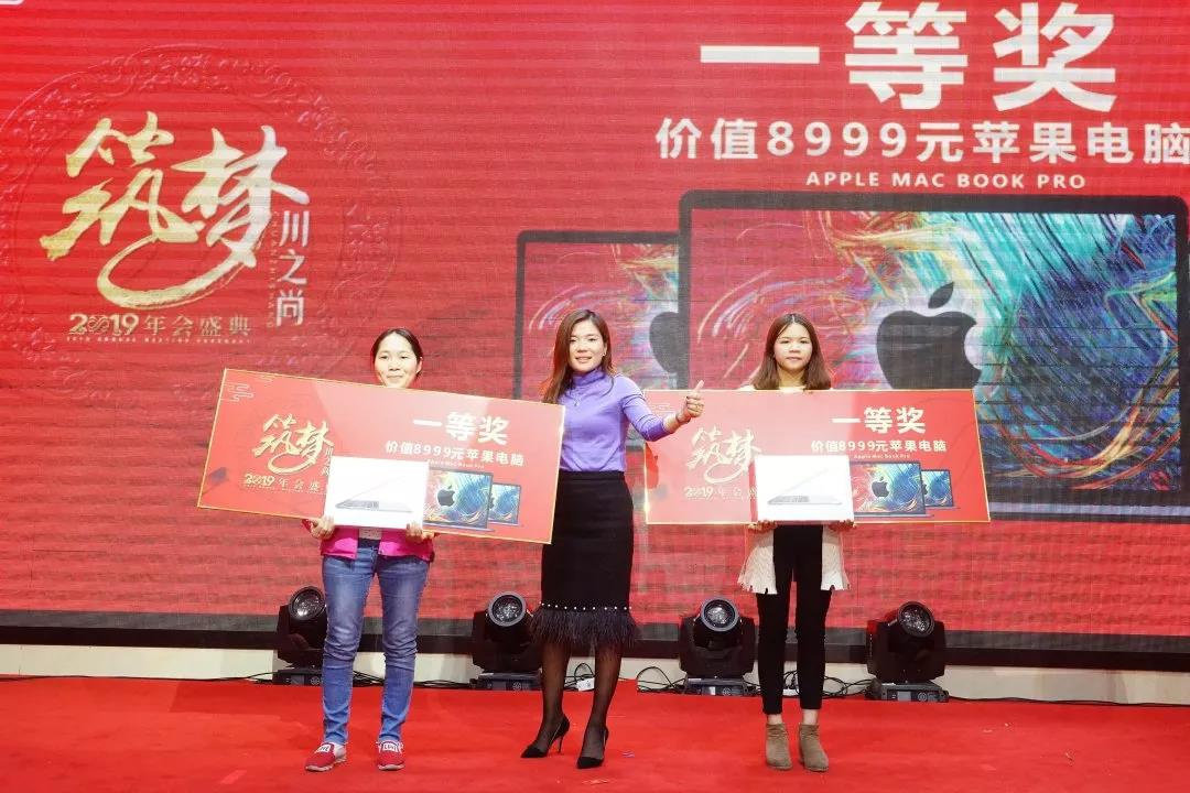 一年一度的年会最不能少的就是激动人心的抽奖环节,大奖不断、花落谁家,本次年会奖金奖品十分丰厚,有MacBook(苹果手提电脑)、名牌手机、名牌电动车、黄金套装、现金红包等,最让家人们翘首盼望的非特等奖“现金一万八千八百八十八元”莫属。一轮又一轮的抽奖把现场气氛一次又一次推向高潮,现场掌声、欢呼声不断,愿家人们在新的一年鸿运当头,做幸运锦鲤。